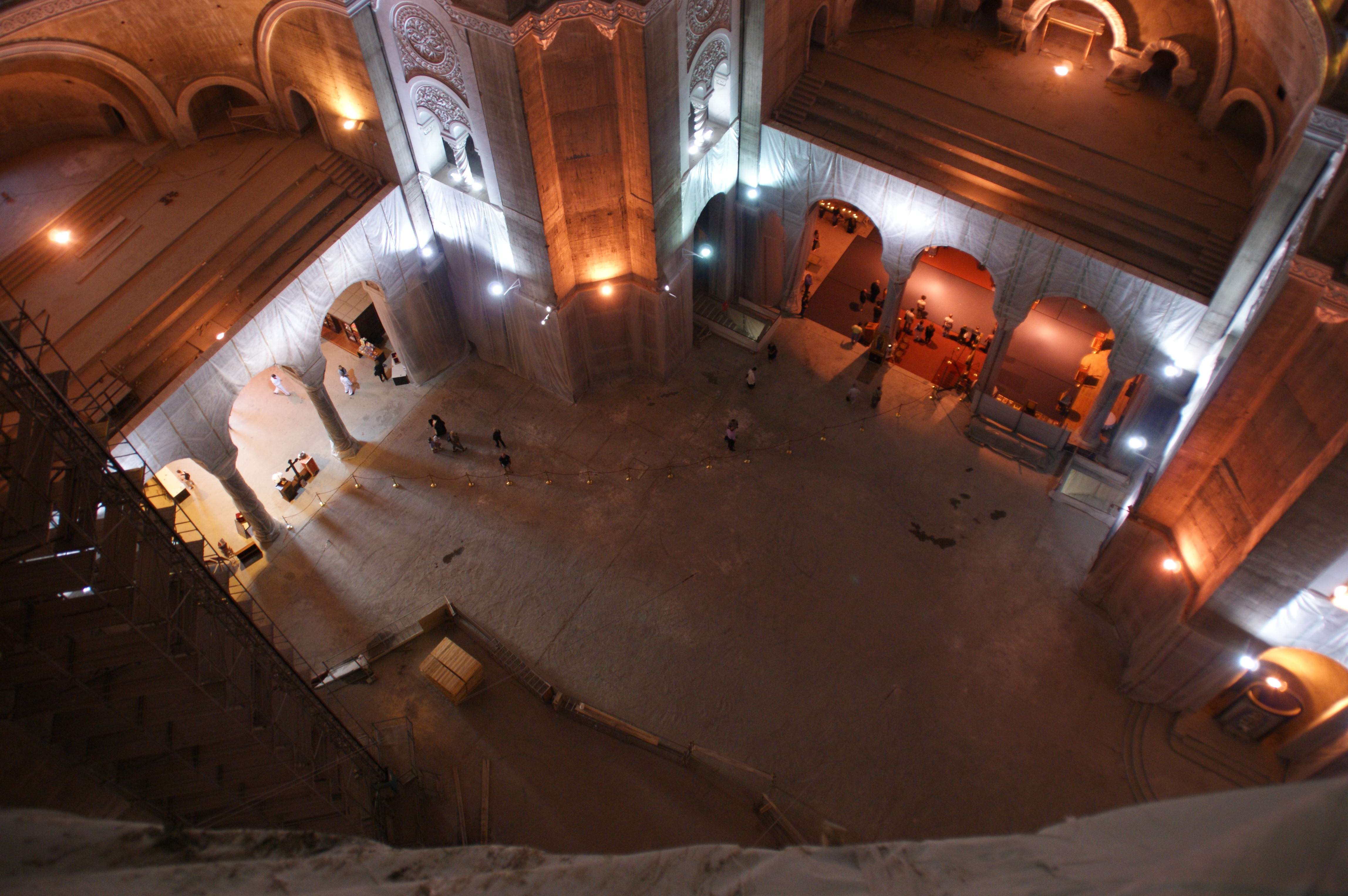 Rakennustelineet hallitsevat vielä sisätiloja, mutta maalattiaa ei ole ollut enää vuosiin. Kahdesta pienestä myymälästä heti sisääntulon luona saa ostaa matkamuistoja, koruja, ikoneita…