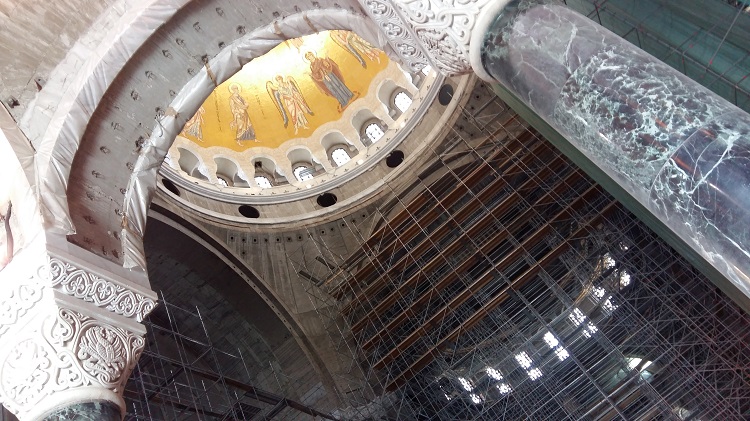 Pääkupolin mosaiikki on asetettu paikoilleen toukokuun 2017 ja helmikuun 2018 välillä. Kupolin keskiössä on kuvattuna Jeesuksen taivaaseenastuminen. Ylösnoussut Kristus istuu sateenkaarella oikea käsi nostettuna siunaukseen ympärillään neljä enkeliä, apostolit ja Theotokos (Maria, Jumalan äiti).