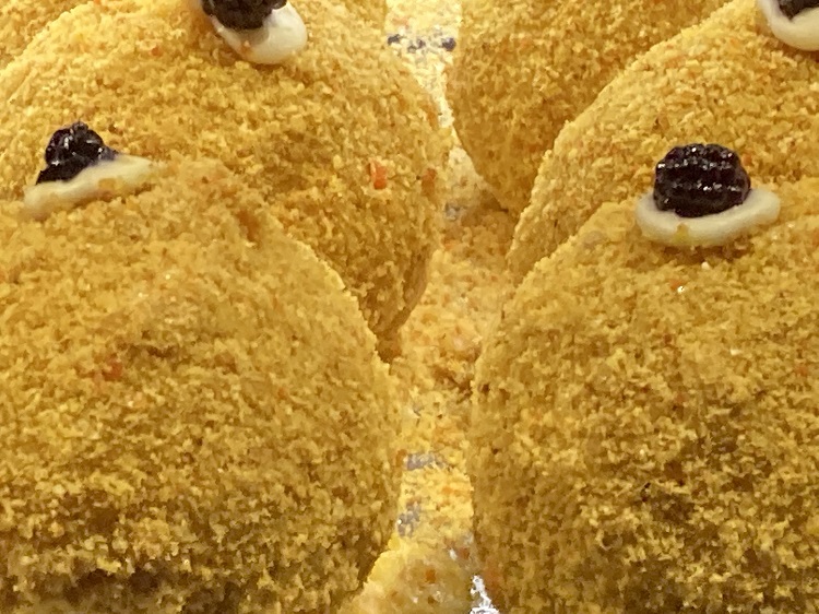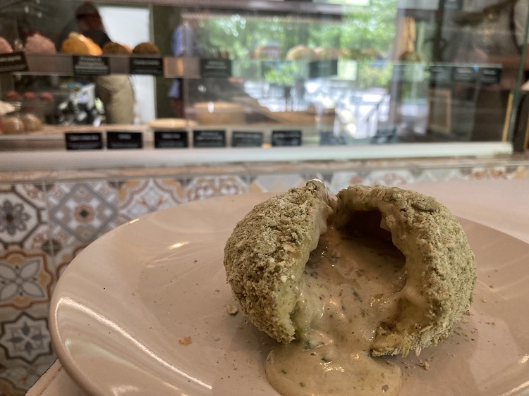 Me jäimme nauttimaan pistaasi- ja karamellitäytteisiä makupalojamme paikan päälle. Molemmissa oli sisällä pehmeä vanukasmainen seos, mutta eivä nämä uudet tulokkaat omassa makumaailmassani yltäneet lähellekään tasoa, jolla syrjäyttäisivät perinteisen luumuknedlen.