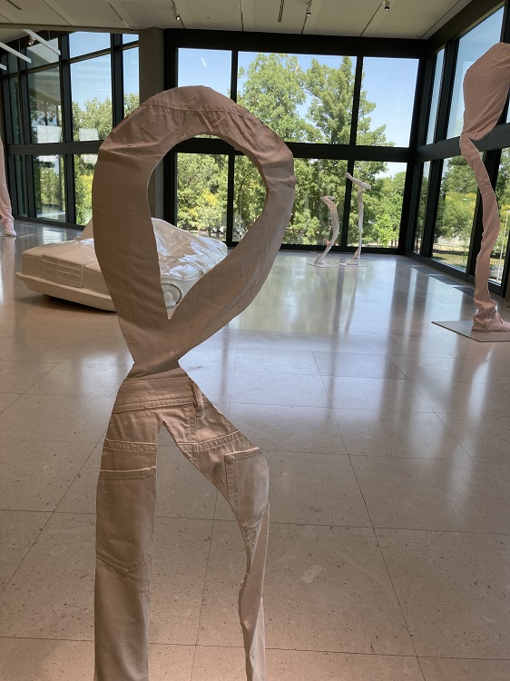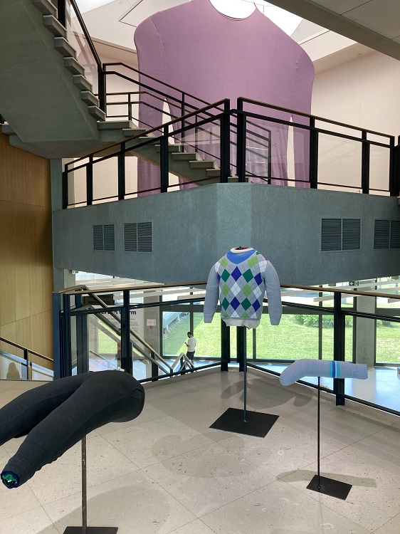 Osaan teoksista kävijä voi pujahtaa sisään. Fat House (Läski Talo) on tällainen iso teos, joka pursuilevine muotoineen ei ole esteettinen eikä sellaisenaan houkuttele astumaan sen suuta muistuttavasta ovesta sisään. Ylitän kuitenkin vastenmielisyyden kynnyksen ja kuulen talon puhuvan minulle. Se käy läpi identiteettikriisiä ja pohtii, onko oikeastaan talo vai taideteos ja miksi on niin lihava. Teos herättelee kävijässä ajatuksia kulutusyhteiskunnan ongelmista. Syömme liikaa ja muotoilemme kehoamme ulkoisten kauneusihanteiden mukaisiksi. Talo on kuin vaahtokarkki tai pöhöttynyt ylensyöjä tai epäonnistunut kauneusleikkaus.